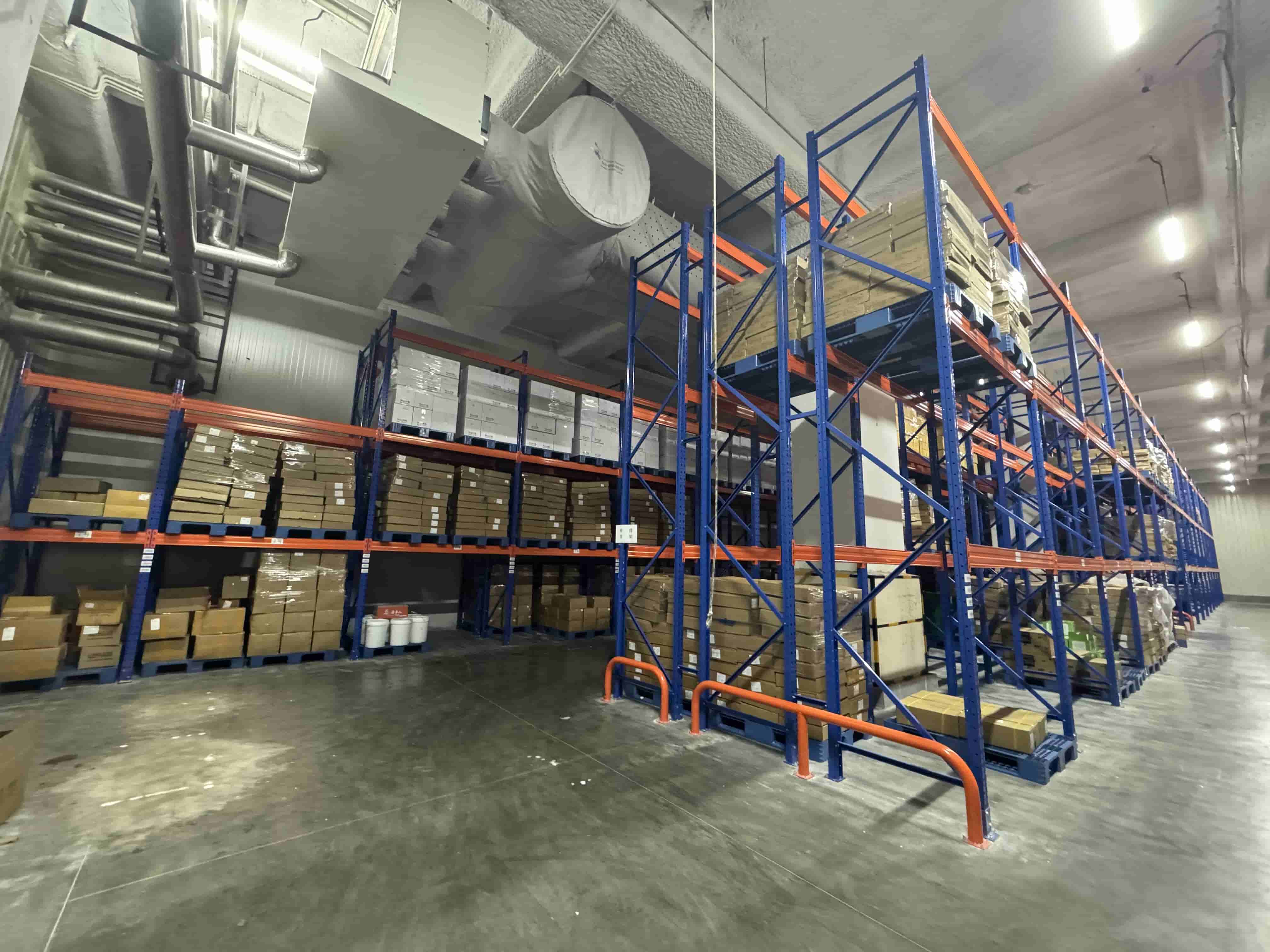 3、深度式货架四组横梁式货架的并排设计,减少了通道对于仓库空间的立体占用。